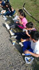 カートンドッグの完成で〜す。「いただきま〜す。星3つ!」
