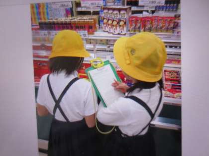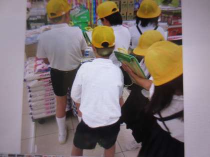 まずは、店内の工夫されている点を見つけるグループ学習をしました。「買い物しやすいための看板が天井から吊られている。」や、「並んでいる商品が取りやすい高さになっている。」など発見している子どもたちも多くいました。