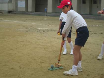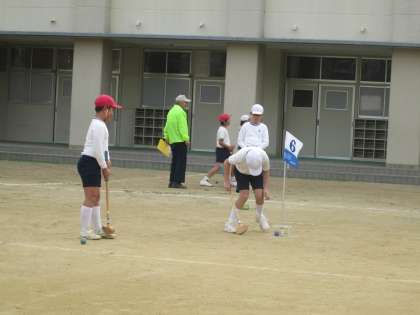 内代小では地域の方々との交流活動の一環として、「グラウンドゴルフ」に取り組んでいます。今日は4年生の日でした。2学期に行った時とは気候が違い、クラブを握る指先が冷たそうでしたが、ゲームが始まるとあちらこちらで歓声や悲鳴?があがり、運動場は熱気に包まれていました。グラウンドゴルフを楽しみながら、地域の方々との良い交流もできたのではないでしょうか。