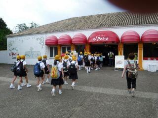 予定より早くスペイン村に到着しました。車よいした児童はなく、全員元気です。今からパエリア作りに挑戦です。