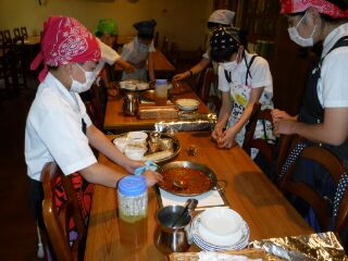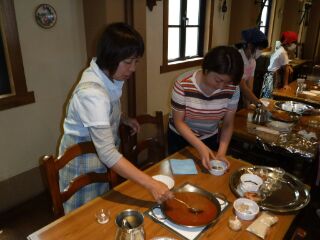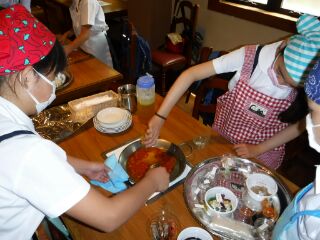 今から全員シェフになってパエリアを作ります。どんな味になるか腕の見せどころです。松井先生や塚畝先生も(慣れない手つきで)挑戦中です。
