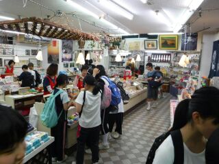 お楽しみの買い物タイムです。旅館街の中に立ち並ぶ土産物店で買い物をします。この時間も子どもたちにとって思い出となる時間です。余談ですが、私も◯◯年前の修学旅行の時、同じ場所でお土産を買いました。並んでいる商品は随分様変わりしました。