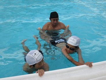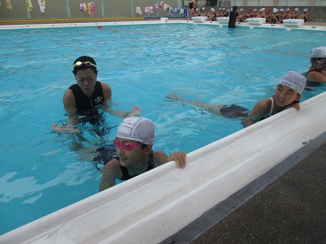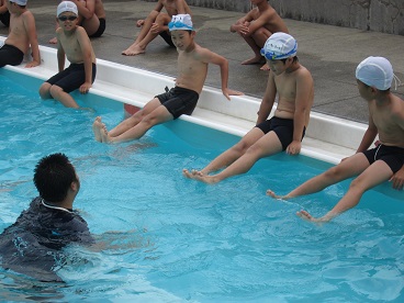 4年生は、高学年での水泳学習にそなえて、平泳ぎの足の動きも丁寧に教えていただきました。