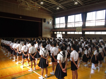 1学期の締めくくり、終業式を行いました。校長先生からは、「丁寧」「根気」についての話がありました。暑い中、夏休みの宿題を丁寧に、そして根気よく取り組むことで、2学期からの運動会の練習へ向けて、集中力と忍耐力をつけてくようにという事でした。楽しいこともいっぱい待っている夏休み、楽しく、そして安全に過ごして2学期からも元気に登校してほしいものです。