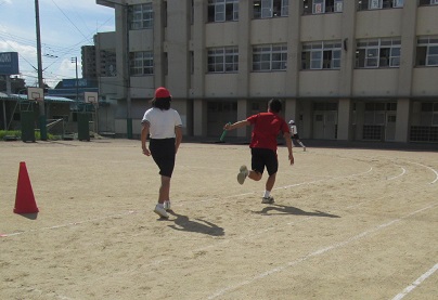 3週間後にせまった運動会。今日は都島区役所から派遣された体育指導員が、4年生にリレーを教えてくださいました。やはりポイントはバトンパス。ついつい早く走ることに夢中になってしまう子どもたちですが、バトンパスが勝負の分かれ目になるというお話を聞き、繰り返し練習に励みました。お互いに声をかけ合うことで気持ちが通じれば、きっとうまくバトンが渡ることでしょう。バトンを通じてお互いの気持ちを伝えていくのがリレーの良さではないでしょうか。運動会当日に、今日の練習の成果が見られることを願っています。