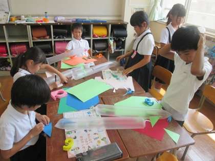2年生の生活、おもちゃ作りの学習の様子の続きです。