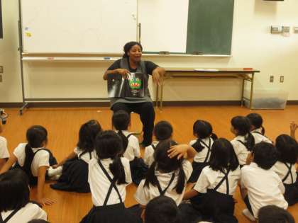 運動会に向けて全力投球の子どもたちですが、9月28日(木)にC−NETのJOJO先生と外国語活動をしました。JOJO先生は週に一度来校されるのですが、1年生の子どもたちは、ネイティブの先生ということで今まではどう話しかけていいか分からなかったようでした。