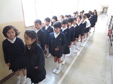 『えがおいっぱいで 大きな声で あいさつする 楽しいクラス』