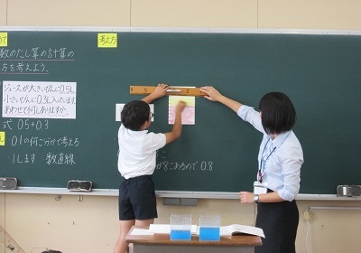 3年生の算数の様子です。盛り上がった運動会から、しっかりと気持ちを切り替えて学習に集中しています。今日は、小数のたし算でした。単に計算方法を身につけるのではなく、どうしてそのような計算になるのか、一人一人が小数や計算の仕組みを考えながら学習を進めていました。