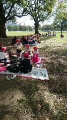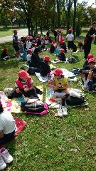 縦割り班による活動が終わり、今から待ちに待ったお弁当です。グループで仲良く食べます。あれ、まだ合格がもらえていないグループがあるぞ!