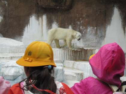 昼ごろにはにわか雨が降るかもしれないという天気予報でしたが、朝は時折、晴れ間も見えていたので予定通り遠足に出かけました。「ゾウ」「キリン」「シロクマ」「コアラ」など人気の動物たちを見ることはもちろん、動物園から大阪の名所「あべのハルカス」や「通天閣」も眺めることができました。お昼ごはんを食べ終えたころから細かい雨が降り始めました。後半はご準備いただいた雨合羽を羽織りながらの活動になりましたが、どの子も楽しく過ごすことができました。