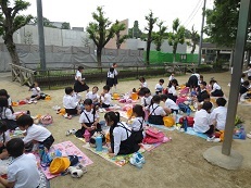 一番いきいきしていたのは、みんなでお弁当を食べているときでした。おかし交換もして楽しそうでした。途中で雨が降ってきましたが、合羽を着て活動できました。