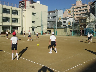 すっかり葉の落ちた「けやき」の木が見守る中、5年生と6年生がドッヂボールで交流をしました。単学級の本校では、学年を越えて交流する機会を多く持つことが大切だと考えています。