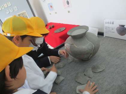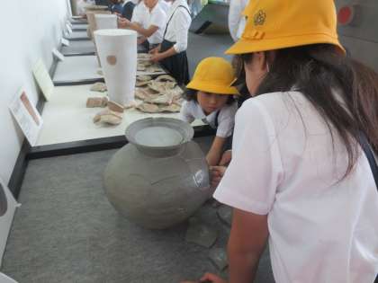 堺市博物館では館内の説明を静かに聞き、古墳について映像を見ながらしっかり学習をすることができました。