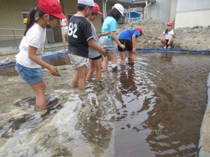 JAの荻田さんにご指導いただきながら5年生は田植えをしました。