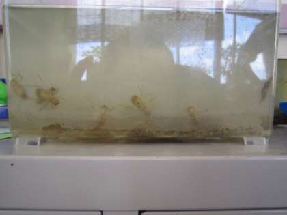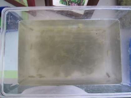 1年間使わなかったプールには、ヤゴやアメンボ、その他顕微鏡で見るといろいろな微生物が住んでいます。今日はプール清掃、排水口に流れていくヤゴをできるだけ救出しました。約100匹捕獲しました。生きた餌しか食べないということなのですが、今のところプール底に沈んでいた藻をすくい一緒に入れてあります。今後、ビオトープに放出するか、生きた餌を調達するか思案中です。