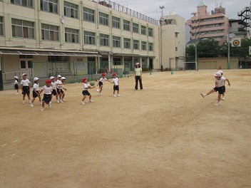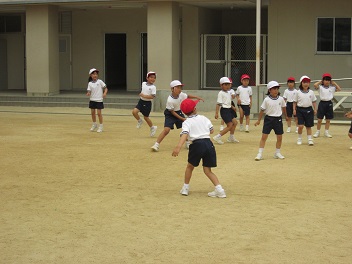 1年生の体育の様子です。体いっぱい、声もいっぱい使って運動をしていました。
