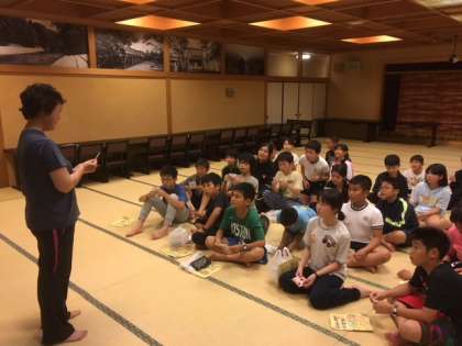 晩御飯のあとは、おみやげタイムです。ホテルが子どもむきの商品を用意してくださって、楽しく買い物できました。そのあとはビンゴ大会。とっても盛り上がりました!