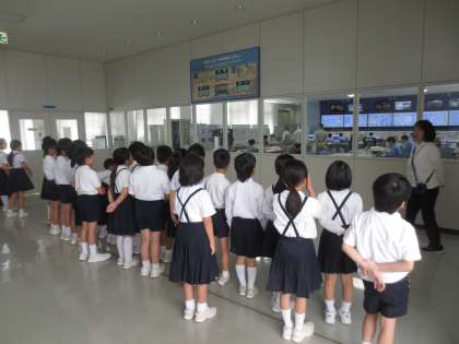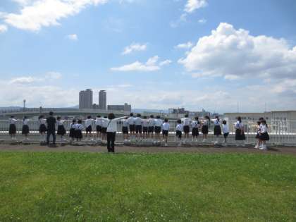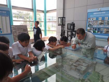施設の中を見学した後、浄水場の屋上から淀川や、取水口の見学をしました。
