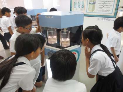 淀川から取水した水を、実際に飲める水にする過程を学びました。実験しながらなので楽しく、興味を持って聞いていました。