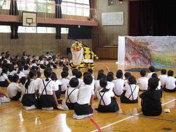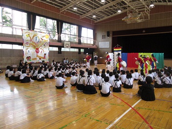 昨日は、芸術鑑賞会の日でした。今年はチュモニの会に来ていただき、韓国・朝鮮の文化に触れる機会をつくっていただきました。「チュモニ」とは、大切なものを入れる袋という意味とのこと。公演を通して、子どもたちが豊かな心を育めるようにとの願いが込められているそうです。