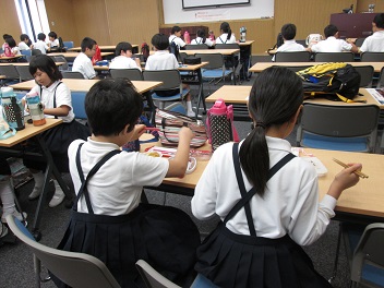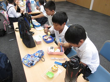 見学した後の昼食の様子です。食べ終わってから、5階のフロアからの眺望を楽しむ子どもたちもいました。