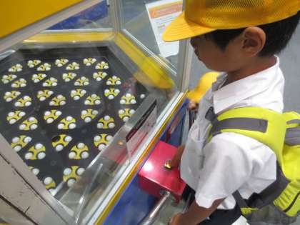 電気について学ぶコーナーでは、走ったり自転車をこいだりして発電する機械が大盛り上がりでした。学校の理科でもちょうど電気について学んでいるので、ボルトやワット数についてもより身近に感じ、学ぶことができたのではないでしょうか。