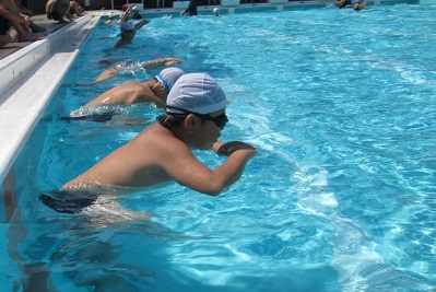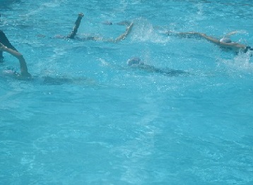 まぶしい日差しの中、ぬるめの水温ではありましたが、子どもたちにとって水の中はいくぶん気持ちが良いようです。少しでも泳力を伸ばそうと、みんな一所懸命に泳いでいました。