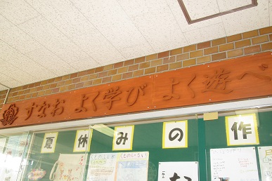 玄関に新しい顔が登場しました。管理作業員が、校訓を刻んだ看板を作成しました。子どもたちの学校生活を、励まし、支えるように掲げられています。お立ち寄りの際はご覧ください。