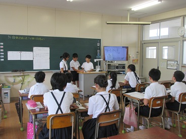 自分で問題にチャレンジした後は、仲間と考え方を交流します。仲間の意見を聞くことで、自分の解き方を確認したり、新たな発見をしたりできます。ノートもしっかりと書けていました。