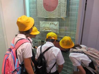今日は社会見学でピース大阪に行きました。月曜日の道徳の時間に「広島に歳はないんよ」というお話を読み、戦争について知っていることを子どもたちに聞きました。すると、日本が戦争をしていたことは知っているけれど、それがいつのことなのか、どのようなものであったのか知っている子はほとんどいませんでした。日本は世界で唯一の被爆国であることや、みんなと同じような歳の子が親元を離れ危険な都会から田舎にうつって生活していたこと、たくさんの若者が兵隊に召集され命を失ったことなどを伝えました。