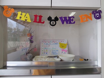 季節感といえば、これまでにも紹介してきましたが、給食室のディスプレイにも季節に関連した装飾がされ、子どもたちの学校生活を潤いあるものにと給食調理員が工夫をこらしています。