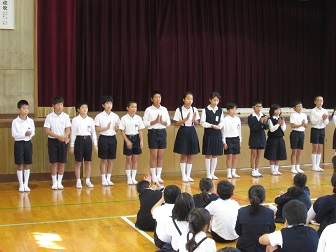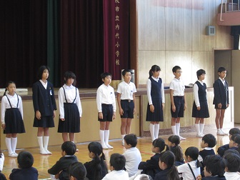 集会の後半は、後期の代表委員、各委員会委員長および副委員長のあいさつがありました。みんなの前で、マイクなしで堂々と抱負を発表していました。この姿を見て、低学年の子たちも「自分たちが高学年になったら!」と感じていることでしょう。高学年の良いモデルが次の代に引き継がれ、学校の文化を築いていることを実感します。