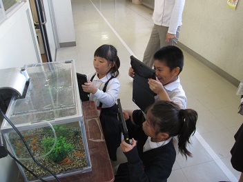 班ごとに写真と動画を撮っています。吸収の速い子どもたち、学習に活用する中で自然に操作方法を身につけていきます。記録した画像をもとにお互いが交流することで、新たな発見が生まれます。