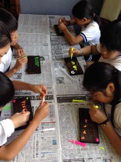 5年 林間学習 2日目 「カラフルな焼き板ができました!」