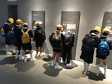 冬空の中、6年生が社会見学に出発しました。社会科の学習として「戦争と平和」「大阪の歴史」について学習をしに行きました。最初に訪れた『ピースおおさか』では、展示物や映像資料を見て、知ったことや気づいたことを書き留めていました。