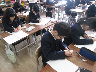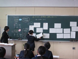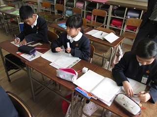 立方体を展開した後は、自分が見つけた図を書いてみます。授業の終盤は、お互いの考えを発表し、似ているところや違うところに着目して分類しています。
