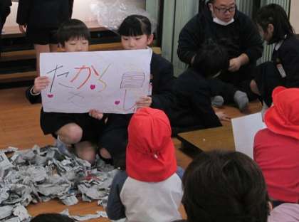 待ちに待った「すまいる交流会」でした。0歳〜5歳までの子どもたちとふれあいました。2年生は、生活科の学習でおもちゃを作りました。そのおもちゃで一緒に遊びました。優しくルールの説明をしたり、景品を渡してあげたりして、楽しんでもらえるようにたくさん工夫しました。お兄さん、お姉さんとして元気いっぱい頑張りました。また一つ、自分の成長にも気づくことができました。