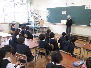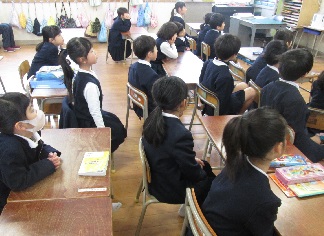 月1回のボランティアさんによる読み聞かせ。今日は1年生の日でした。
