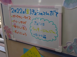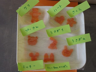 今日の給食は、「ポークカレーライス」「グリーンサラダ」「洋ナシ缶」でした。子どもたちの大好きなカレーライスと言えば・・・そう、ラッキー人参の日です。写真のような形が入っていましたが、見つけられたでしょうか。