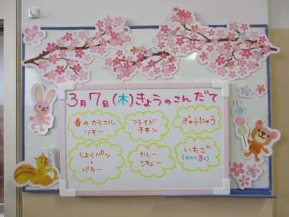 今日は、給食も「卒業お祝い献立」のメニューでした。「卒業を祝う会」も行われ、6年生の「卒業」のムードがだんだん高まってきています。6年生は、学校に来るのはあと9日になりました。残りの日々を大切に過ごして欲しいと思います。
