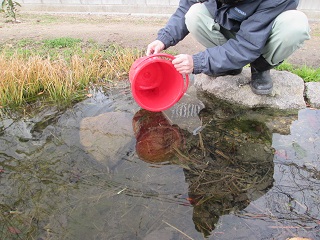次年度へ向けて、ビオトープの整備も少しずつ進んでいます。以前、2種類のメダカを放ったことをご紹介しましたが、今日は「ぬまエビ」の登場です。子どもたちが生活科や理科の学習で、あるいは休み時間の。ひと時に、たくさんの生き物と触れ合えるビオトープにしていきたいです。