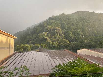 突然の豪雨にびっくり。でも、屋根の下で、きれいな虹を眺めて、歓声をあげる可愛い子どもたちでした。