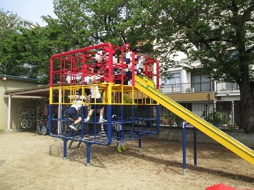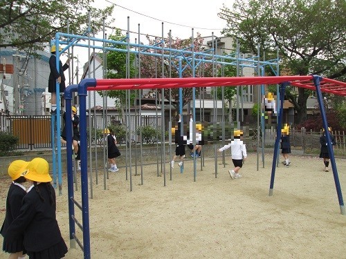 ジャングルジムやうんてい、鉄棒や一輪車で思い切り体を動かしています。