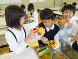 学級閉鎖が明けた12月5日(月)、干し柿作りを行いました。 ピーラーを使って...