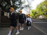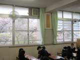 校舎の南側には桜の木が8本植えられていて、春には満開の桜の花でトンネルのように...