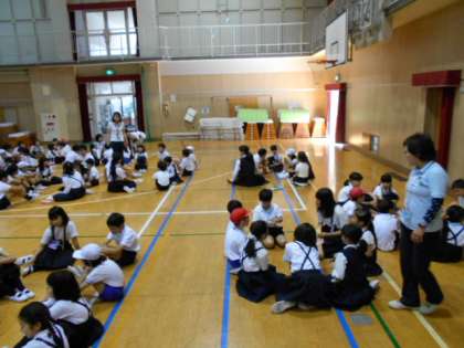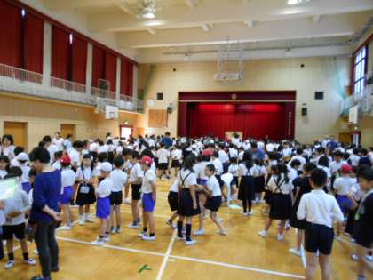 毎年、1年生から6年生がそれぞれ24班に分かれて縦割り班での異学年交流を行っています。