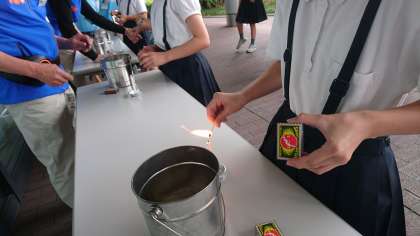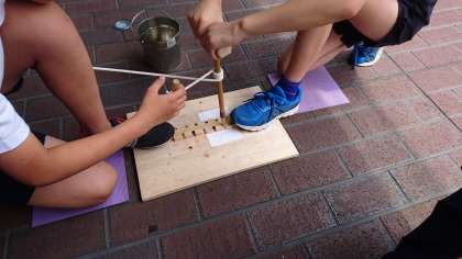 「火おこし体験」や「調理実習」などの活動から食について学びます。スイッチひとつで点火や調整ができる炎も、先人たちは苦労していたのですね。