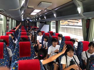 保護者の皆様には、早朝よりお見送りありがとうございました。こどもたちは、バスの中では、クイズや歌でいきなり大盛り上がりです。