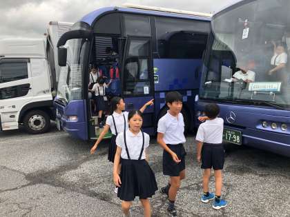 赤松パーキングエリアでトイレ休憩です。大阪市の小学校が、たくさん来ていました。